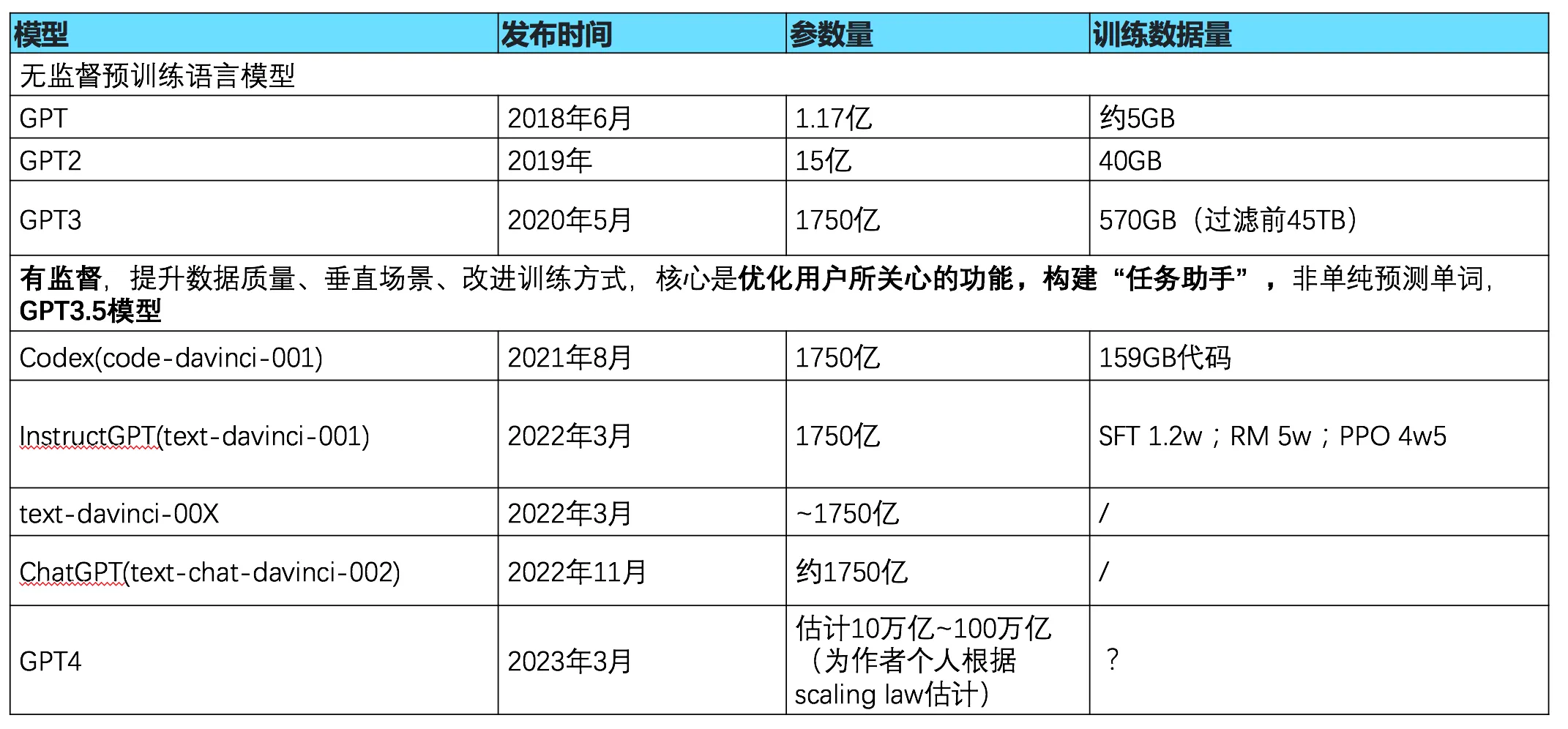 GPT系列模型的整体情况如下图: