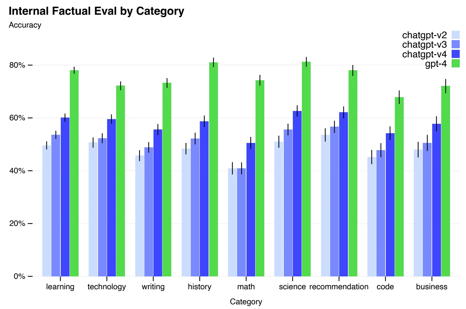 在各类任务上幻觉问题显著减轻,比最新的 GPT-3.5 模型高 40%: