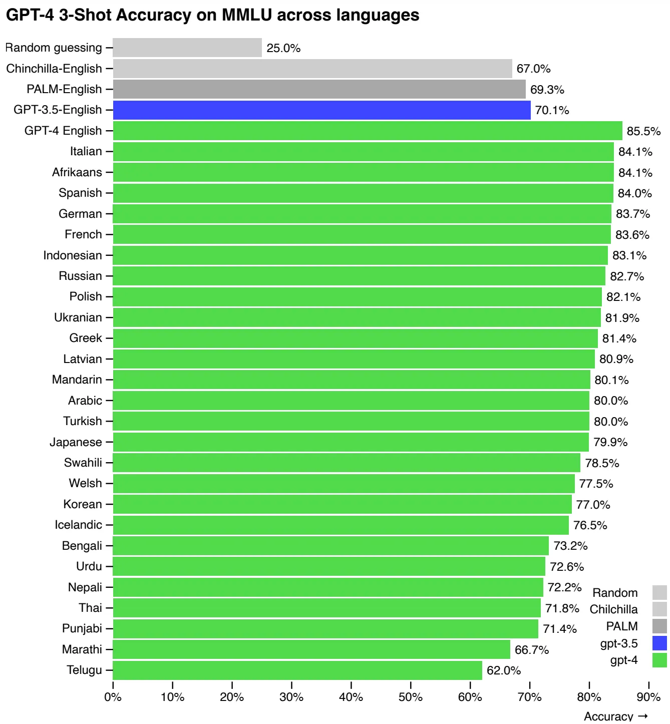 可以看到GPT-4在多语言理解、图文理解能力上均很强大并已融会贯通。